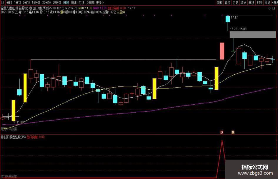 {凹口型态 放量过前高的模型选股 主图源码如下}