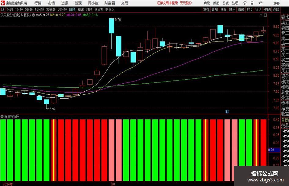 指标通过动态分析股价的相对强度和市场情绪,识别具备连板潜力的个股。当股价进入强势区域时,指标会通过醒目的颜色和标记提示,辅助我们提前布局。