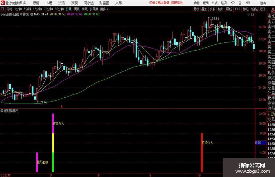 DRAWTEXT(金K线,6,'游资介入'),COLORYELLOW;