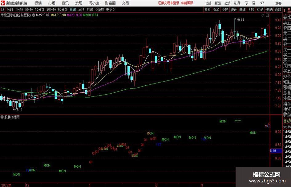 MON_MARK := IF(IS_MON, CUR_HIGH * 1.01, 0); { 在最高价上方1%处标记 }