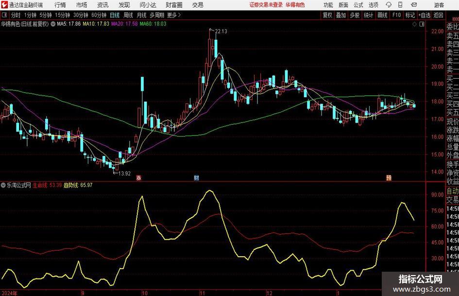 趋势线: 3*SMA((CLOSE-LLV(LOW,27))/(HHV(HIGH,27)-LLV(LOW,27))*100,5,1)-2*SMA(SMA((CLOSE-LLV(LOW,27))/(HHV(HIGH,27)-LLV(LOW,27))*100,5,1),3,1),LINETHICK2;