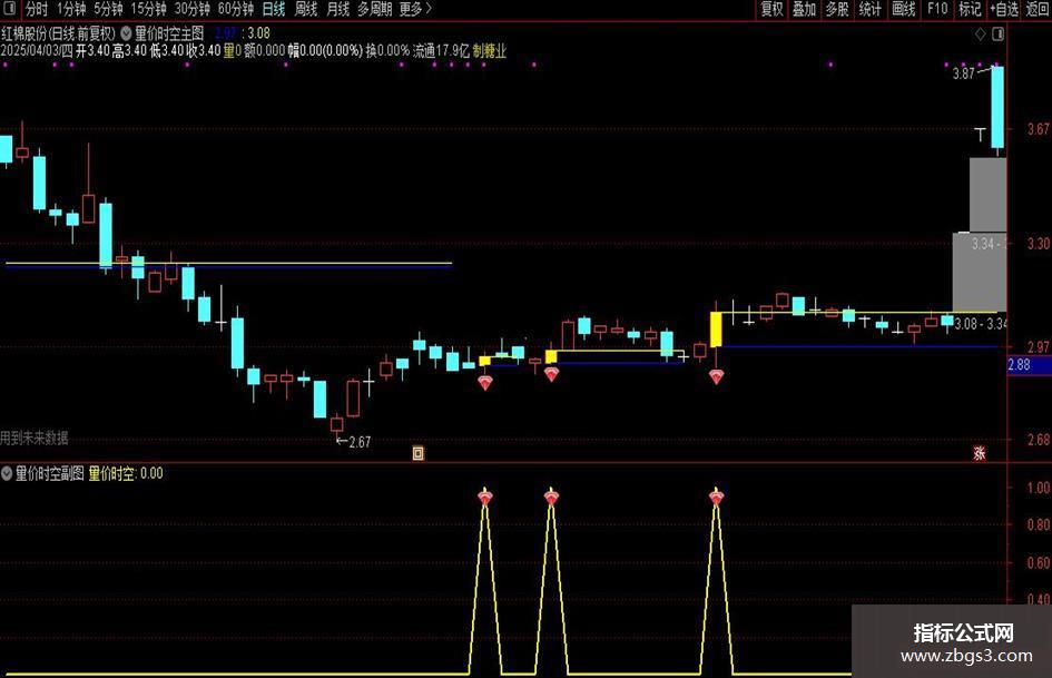 STICKLINE(量价时空,O,C,2,0),COLORYELLOW;