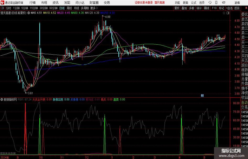 黑马线: IF( VAR28>0.1,VAR29,0)*3, COLOR400080,LINETHICK2;