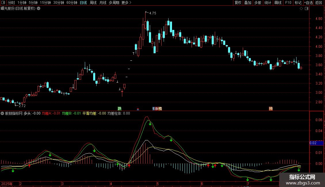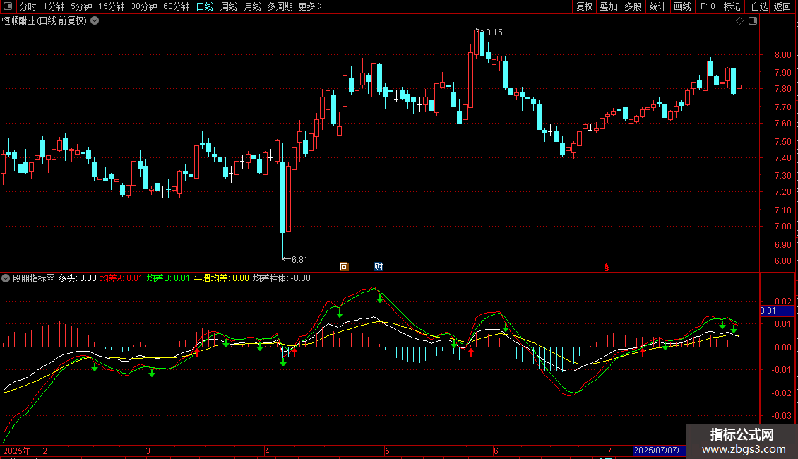 均差柱体:(正均差-平滑均差)*2,COLORSTICK;
