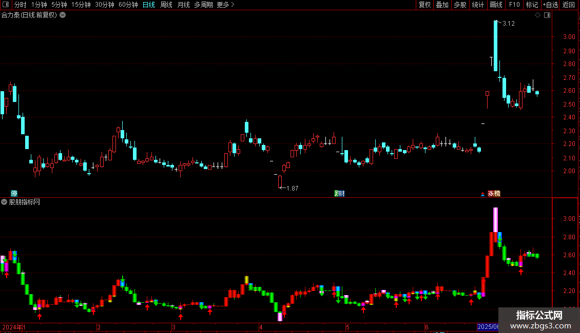 STICKLINE(VAR19,REF(CLOSE,1),REF(CLOSE,2),2.7,0),COLOR770077;