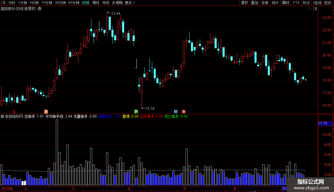 神渔又经过和个股流通盘的反复对比,总结共性,把对个股换手率的技术感悟糅合换手率的共性,精心研发出【神渔换手率】指标,以供朋友们研究换手率之用。