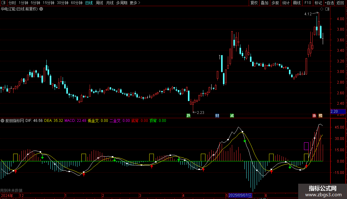 底背:IF(REF(CLOSE,A1+1)>CLOSE AND DIF>REF(DIF,A1+1) AND CROSS(DIF,DEA),0.1,0),COLORRED,POINTDOT;