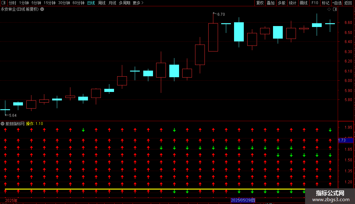 操作:IF(指导线 >6 ,1.1,1),LINETHICK3,COLORYELLOW;