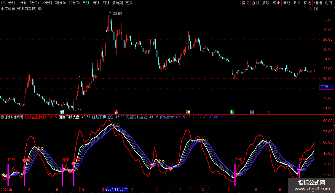红线下穿减仓:EMA(回档不破洗盘,3),COLORFFCC66;