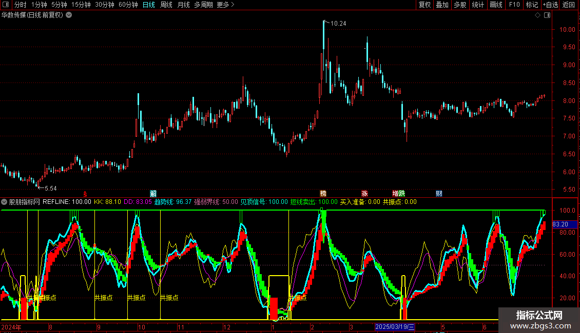 DRAWTEXT(CROSS(K,D) AND CROSS(KK,DD),20,'共振点'),COLOR00FFFF;