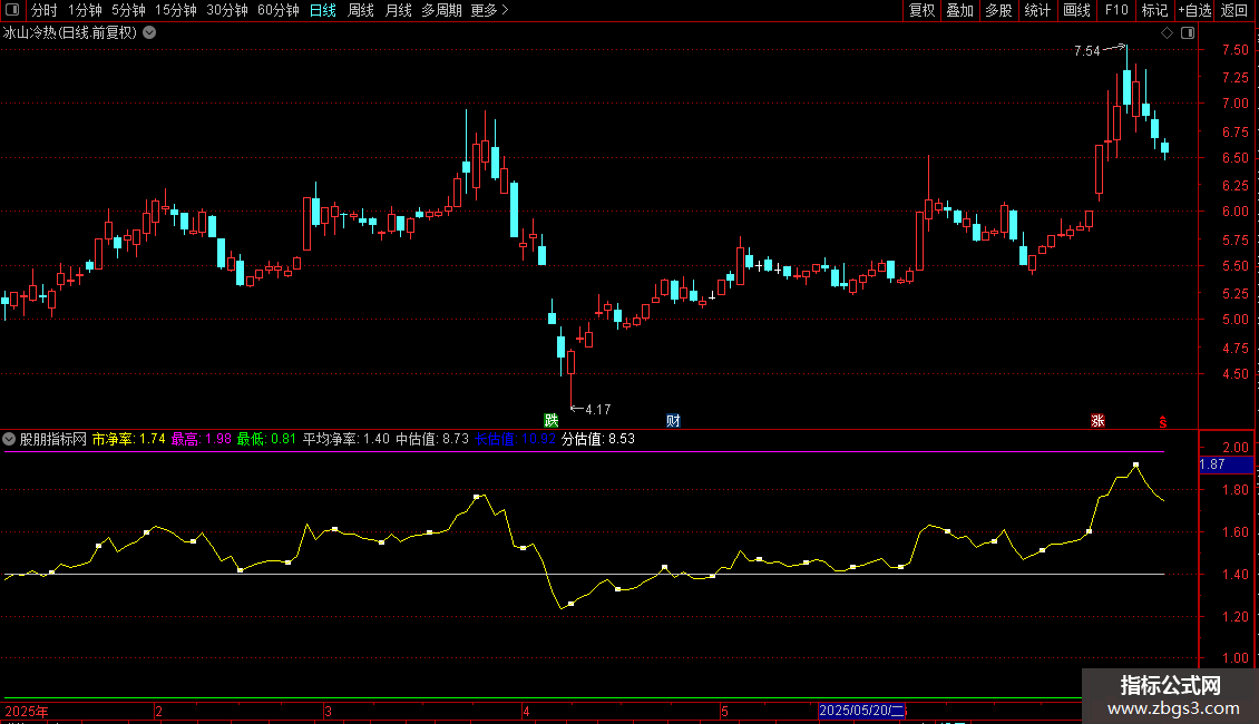 最低:LLV(市净率,CON2STR(FINANCE(42),0)),COLORGREEN;
