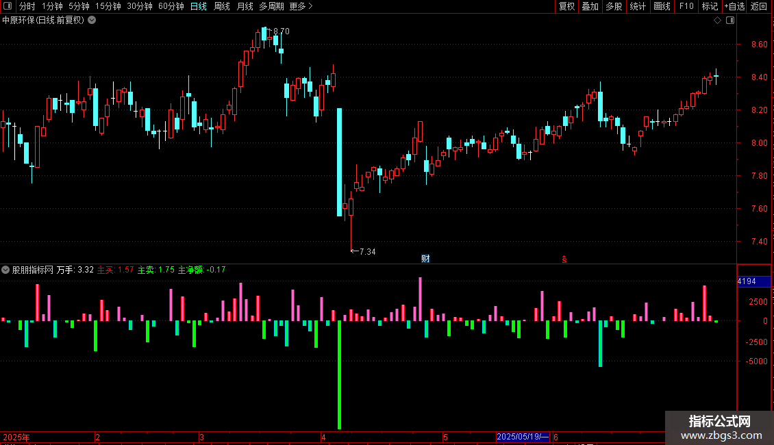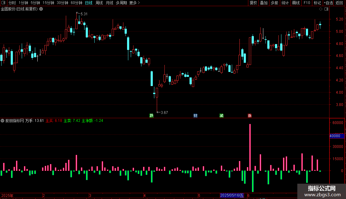 卖:=IF(CLOSE>OPEN,0-VAR1*((HIGH-CLOSE)+(OPEN-LOW)),IF(CLOSE<OPEN,0-VAR1*(HIGH-LOW),0-VOL/2)),COLOR00FF00 ;