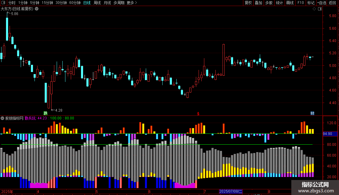 STICKLINE(ZZLKP>80,ZZLKP,ZZLKP-(ZZLKP-80)/2,1.5,0),COLOR00CC00;