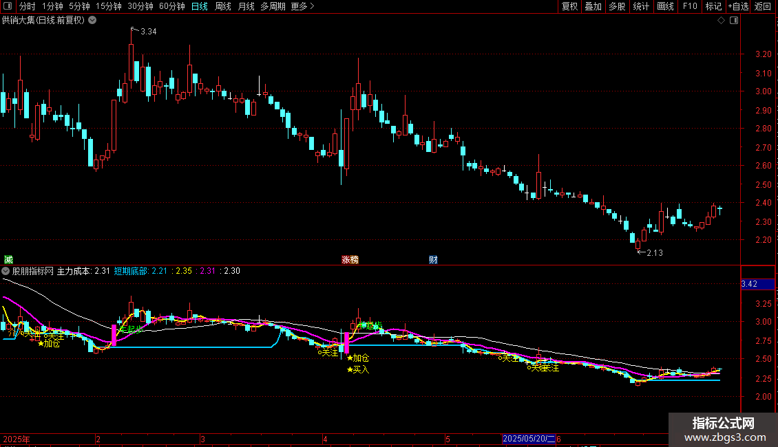 主力成本:EMA(AX,13),COLORFF00FF,LINETHICK0;