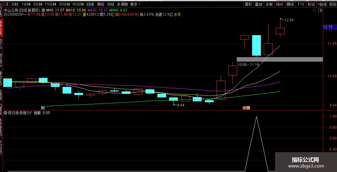 指标通过竞价量比(当前竞价量/昨日成交量)筛选超10%的爆量个股,结合昨日涨停、竞价涨幅(>2%)、流通市值适配等条件,剔除ST及创业板/科创板股票,最终选出竞价强势的涨停接力标的。操作策略:开盘前监控符合条件个股,结合市场情绪择机参与。