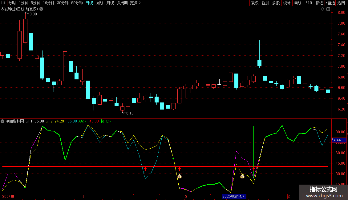 起飞:IF(QF2=QF1,QF2,DRAWNULL)COLORGREEN,LINETHICK2;
