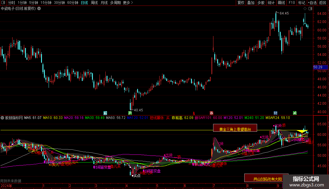 DRAWTEXT_FIX(1,0.70,0.10,0,'黄金三角上是望高台'),COLORYELLOW;