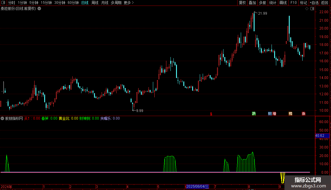 春笋: IF(VAR7 AND REF(CLOSE,1)<=COST(5),20,0),LINESTICK ,COLOR00FF00,LINETHICK2;