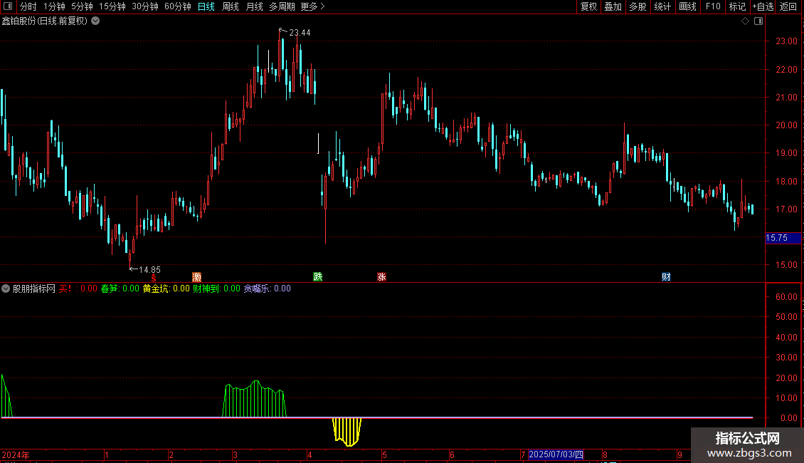 贪嘴乐: IF(VARA>REF(VARA,1) AND VARD AND VARA<-15,30,0),LINETHICK2,LINESTICK,COLORFFA2AF;