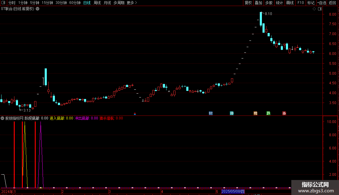 猎杀潜航:IF(CROSS(趋势,底部),10,0),STICK,COLORRED,LINETHICK3;