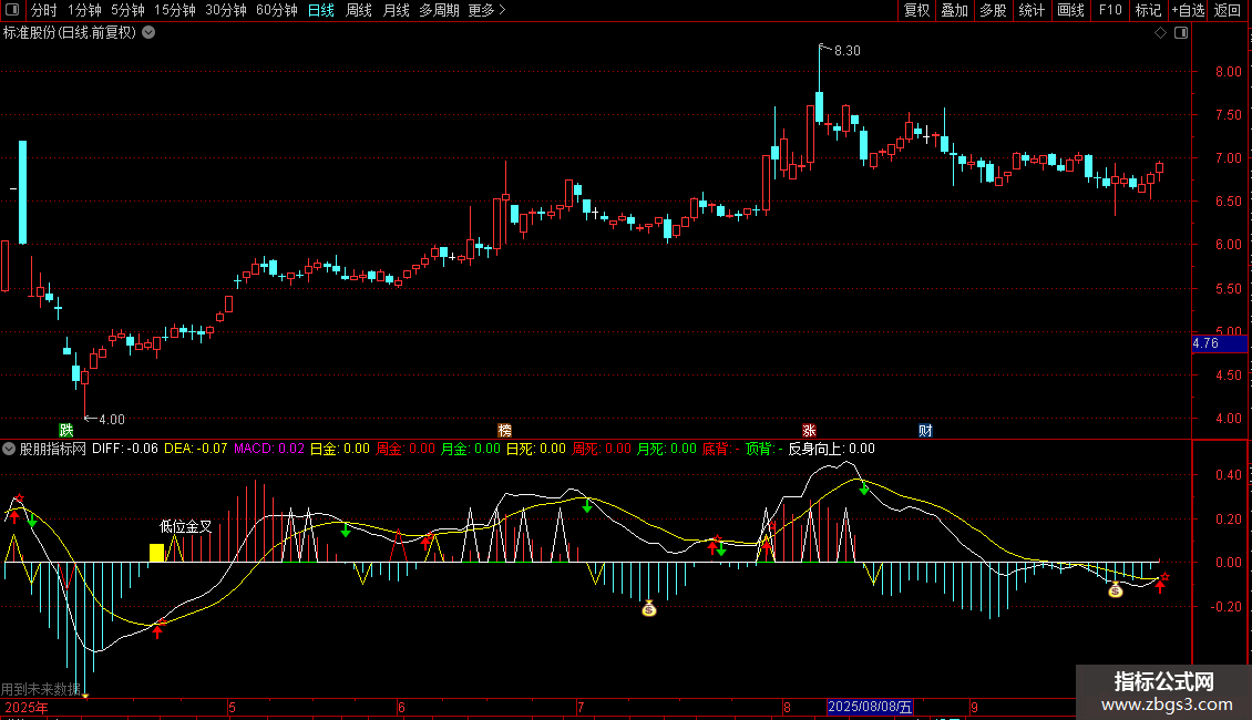 日金:IF(CROSS(日DIFF,日DEA),0.125,0),COLORYELLOW;