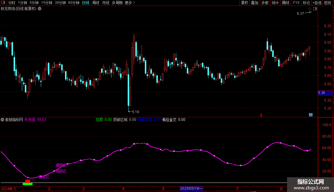 DRAWTEXT(CROSS(牛市线,20),30,'强势区'),COLORFF00FF;