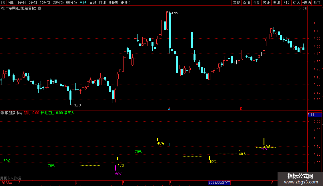 长阴短柱:CLOSE/REF(CLOSE,1)<=0.96 AND VOL<HHV(VOL,30)/1.9,NODRAW,COLORGREEN;