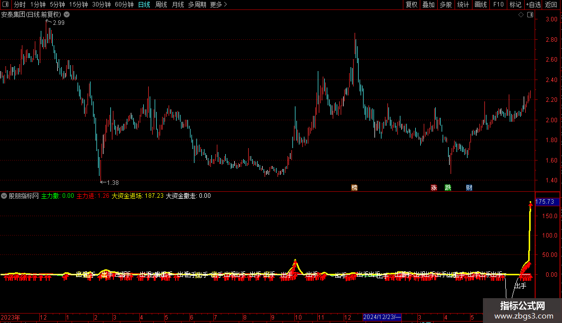 大资金进场:IF(VB>=0,VB*2,0),COLORYELLOW,LINETHICK3;