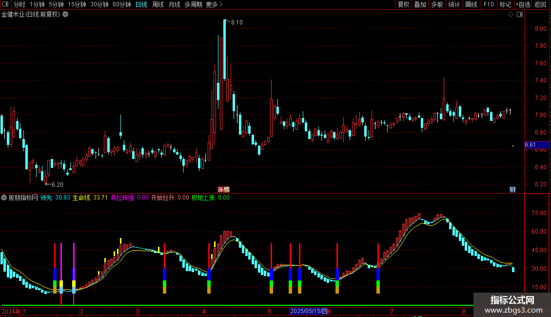 极地上涨:IF(A6,领先,0),COLORGREEN,LINETHICK2;