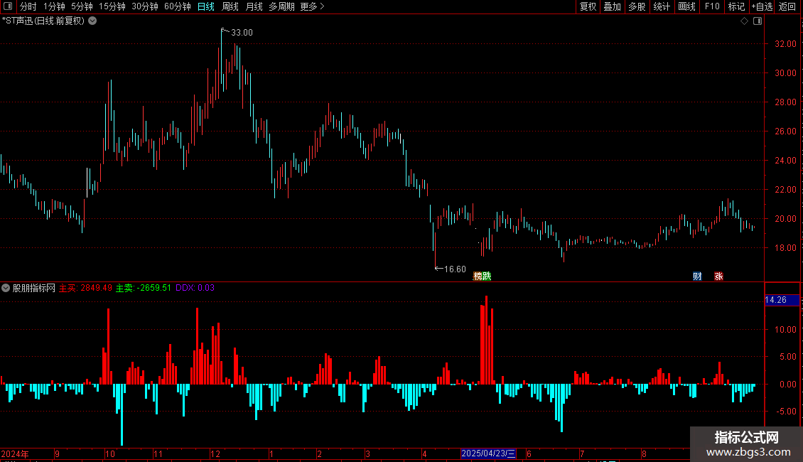 STICKLINE(大单动向<0,0,大单动向,2,0),COLORCYAN;