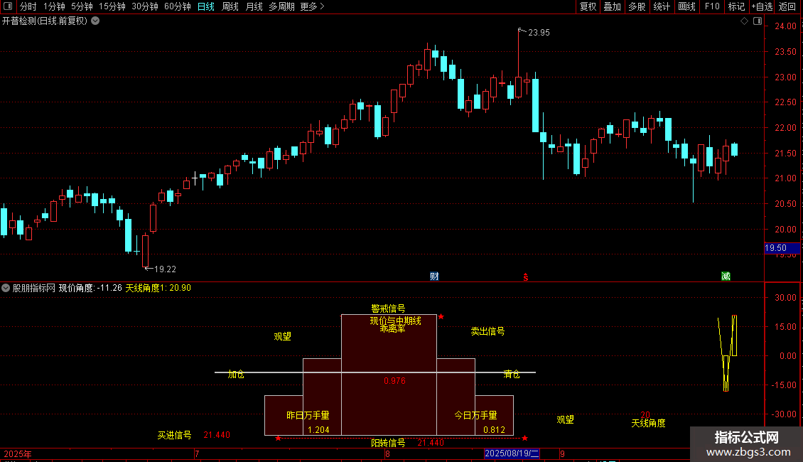 输出天线角度1:如果到最后交易的周期<4,返回天线角度,否则返回无效数,画黄色