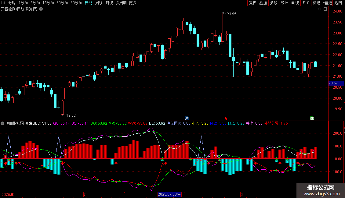 众赢BBD:EMA(总0,3)/SUM(VOL,5)*600,LINETHICK;