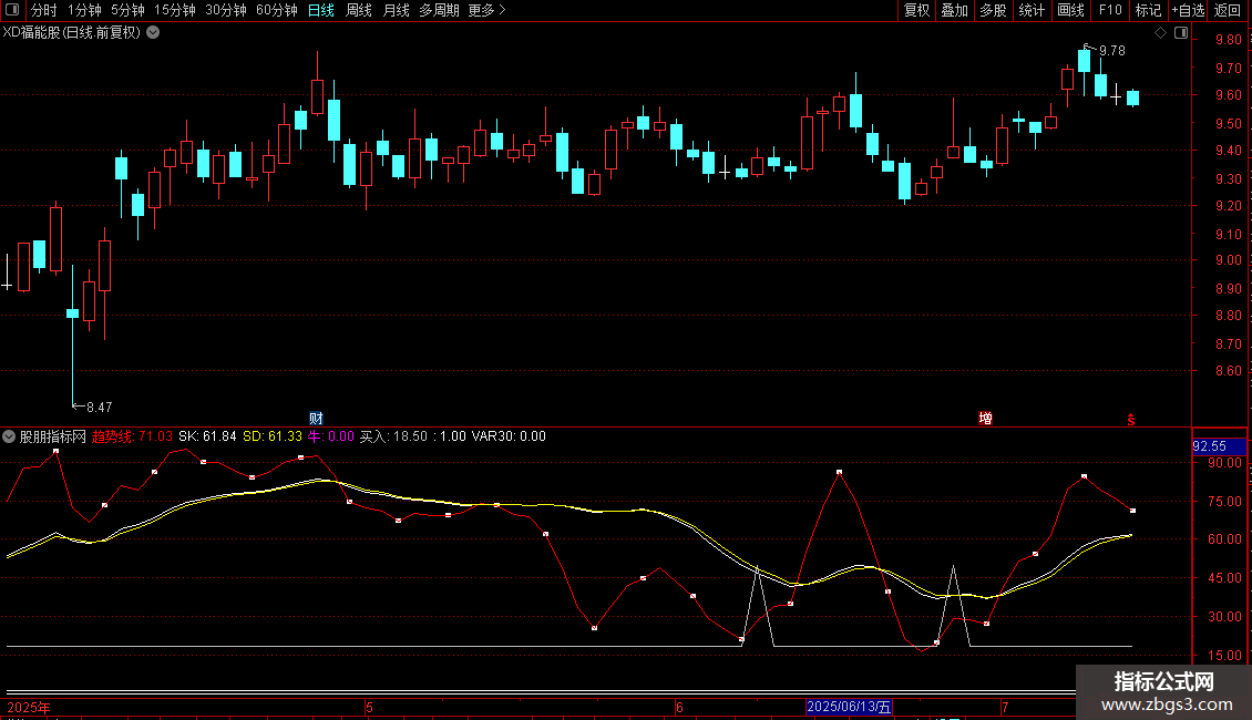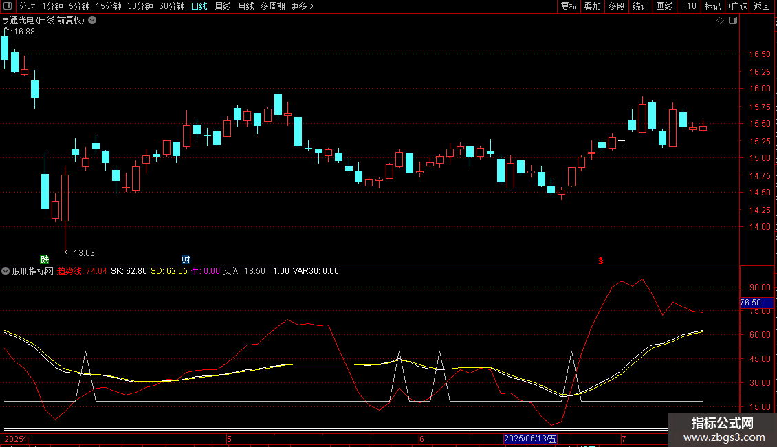 {涨势确立: VAR1*(VAR2C>0 AND VAR2D*16+81.5)*VAR1,COLOR80FFFF ;}
