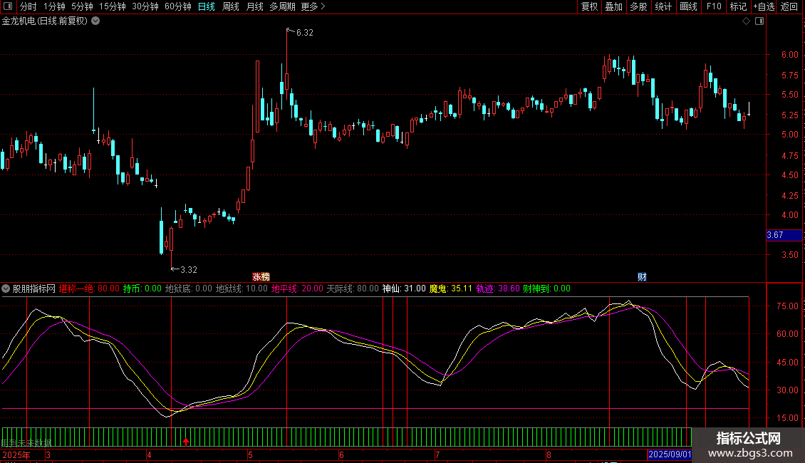 输出堪称一绝:如果1日前的TJ=0ANDTJ>=1,返回80,否则返回10,STICK,画红色