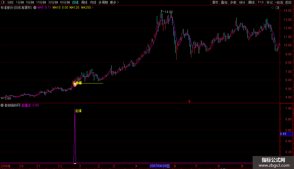 当满足条件起爆点时,在最低价位置画13号图标