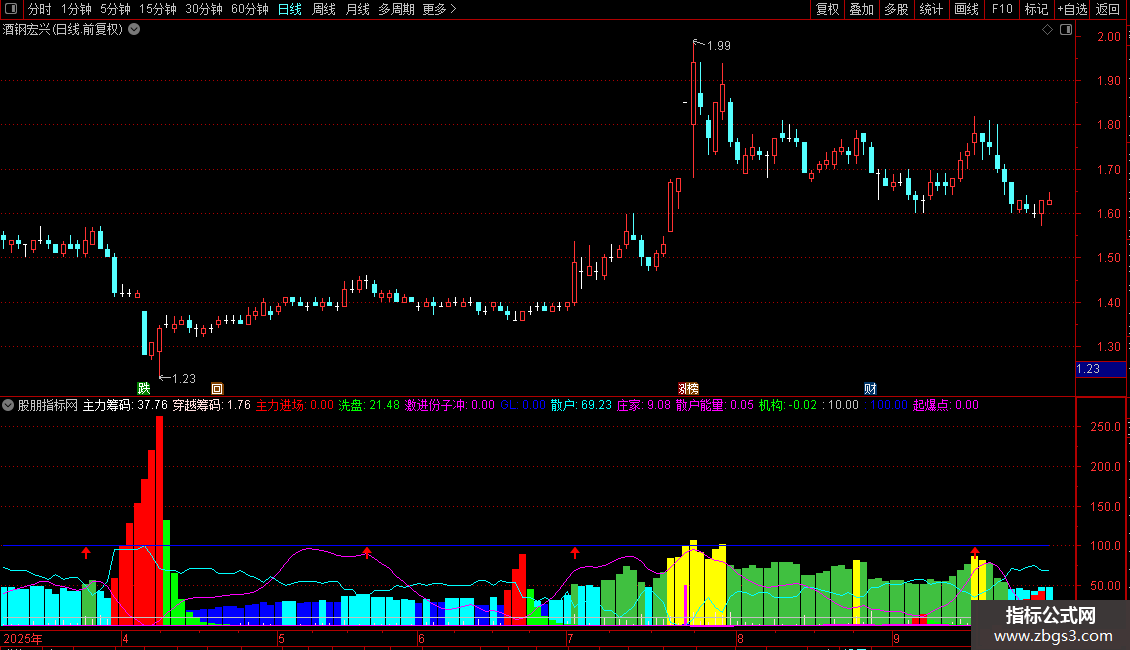 主力进场:IF(VAR5>REF(VAR5,1),VAR5,0),COLORRED,NODRAW;