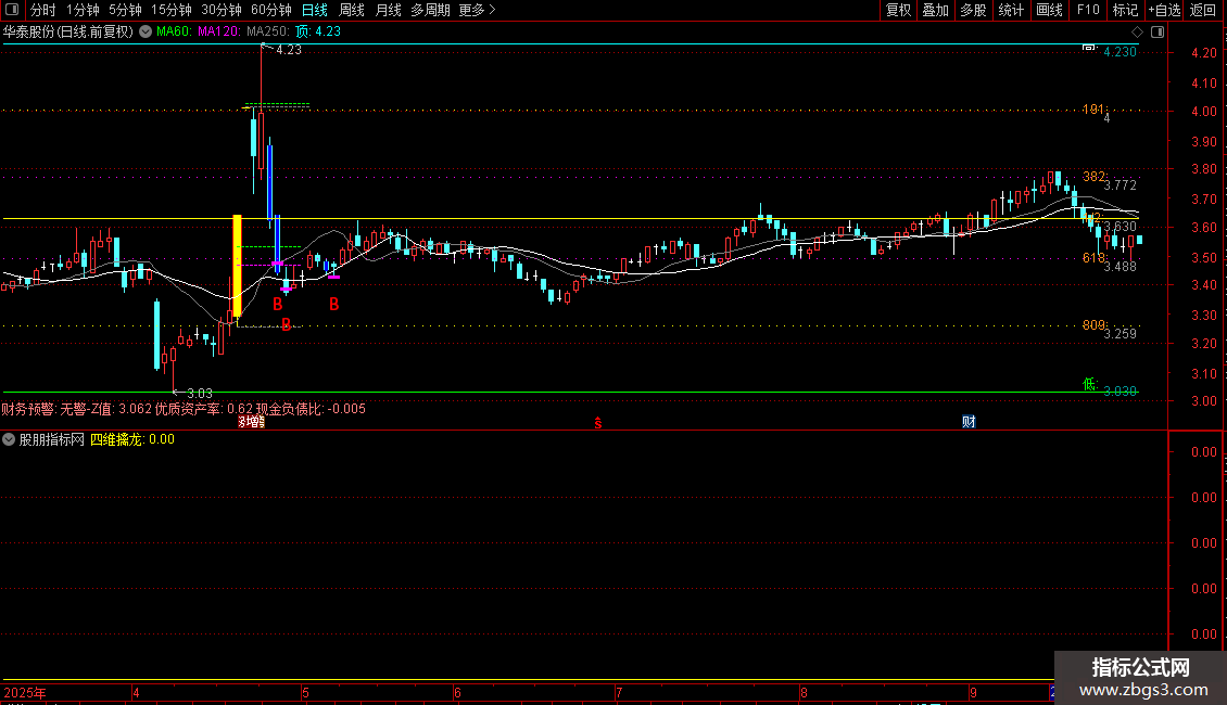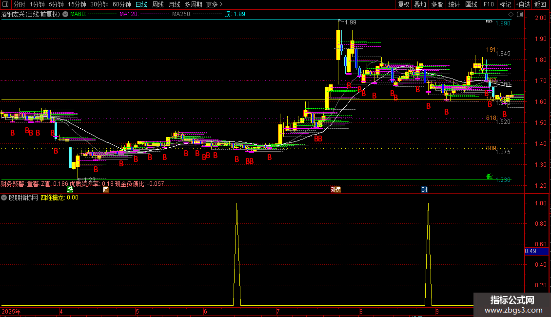 四维擒龙指标包含1个主图指标、1个副图指标和1个指标,无未来函数,适用于股票分析。
