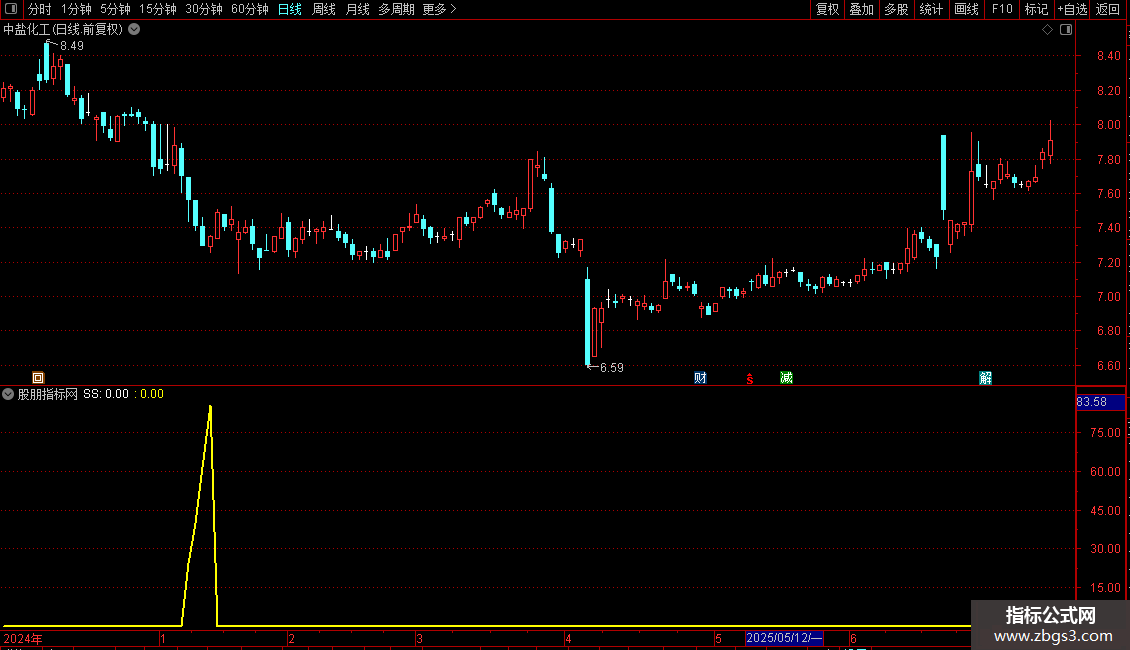 SS: EMA(IF(LOW<=VARE,(VARD+VARF*2)/2,0),3)/618*VAR10, NODRAW;