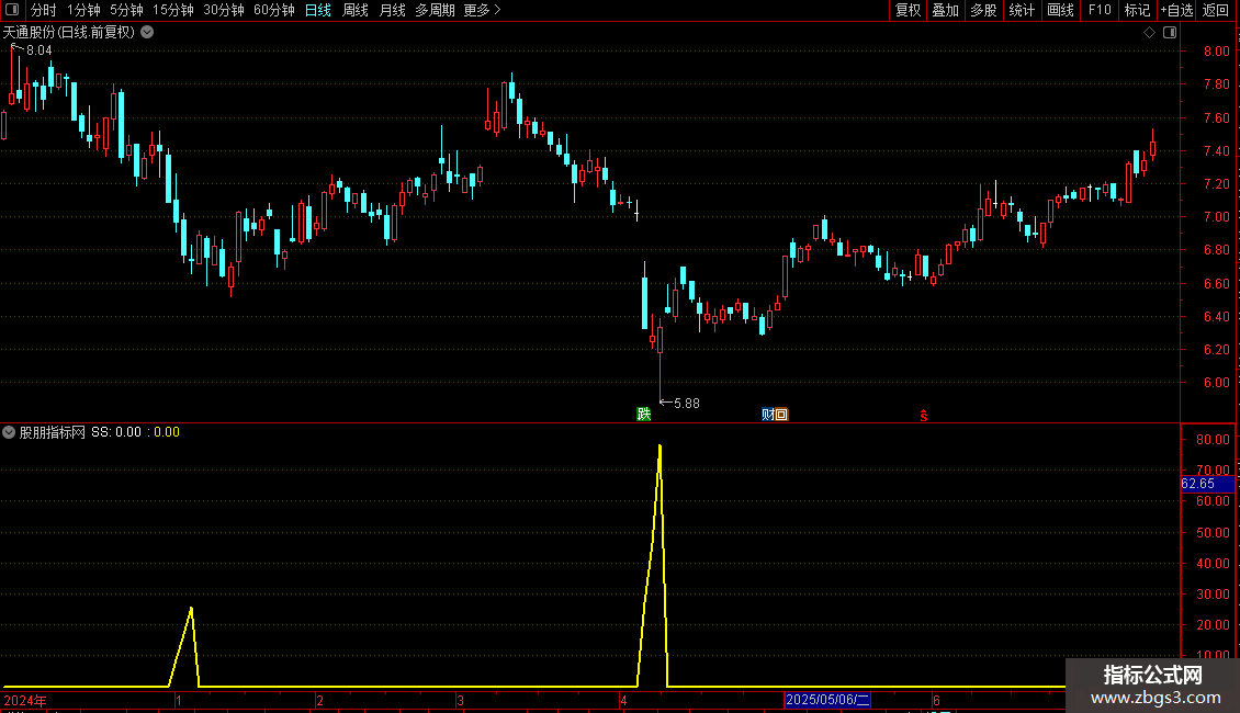 VAR10:=IF(MA(CLOSE,58),1,0);