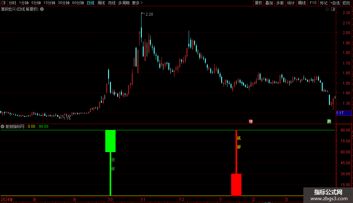 通达信〖极点顶底〗副图指标 红色柱预示超跌反弹机会 源码