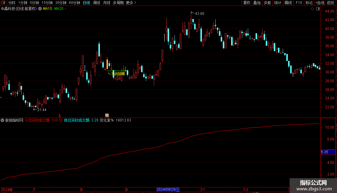 今日实时成交额:SUM(AMOUNT,VAR1+1)/100000000,COLORRED,NODRAW;