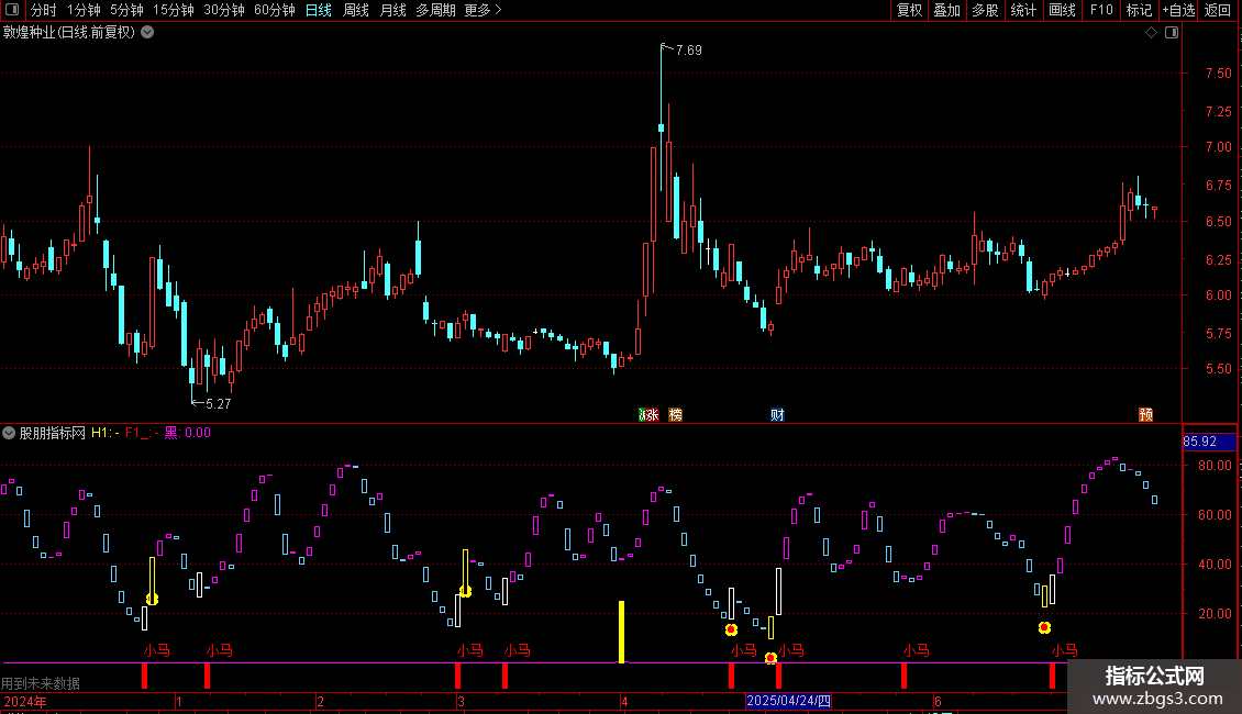 输出黑:(MA0>1日前的MA0*2.5 AND MA0>15),COLORFF00FF