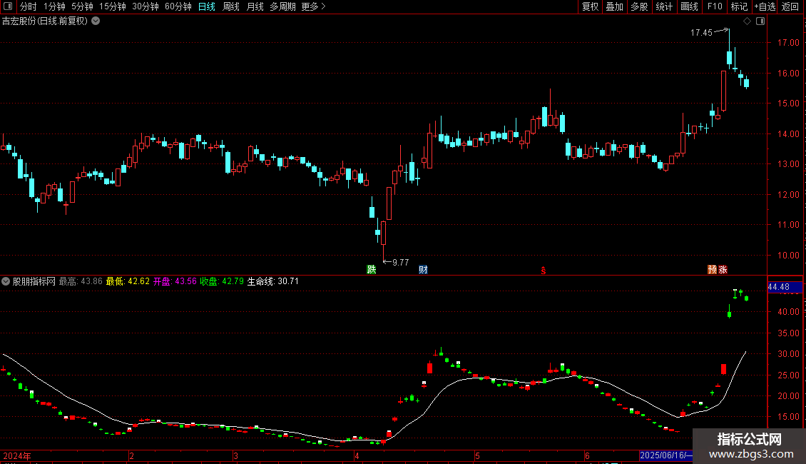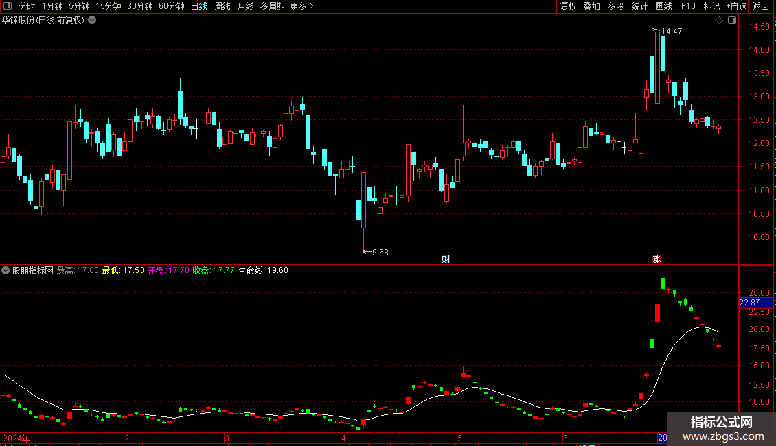 最低:VAR1*LOW/VAR3*1/10,POINTDOT,COLOR009900,COLORYELLOW;