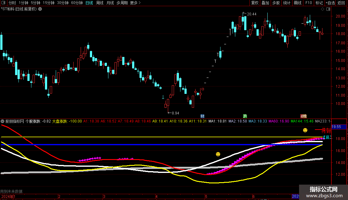 乖离线赋值:((收盘价-1日前的MA1)/20+MA1)*1.20