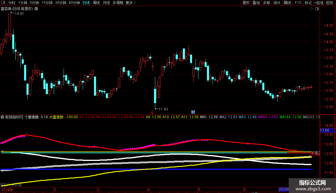 输出MA144:MID的144日简单移动平均,线宽为2,NODRAW