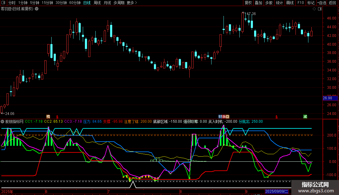分批出:IF(CROSS(80,MM),200,250),LINETHICK2,COLORCYAN;