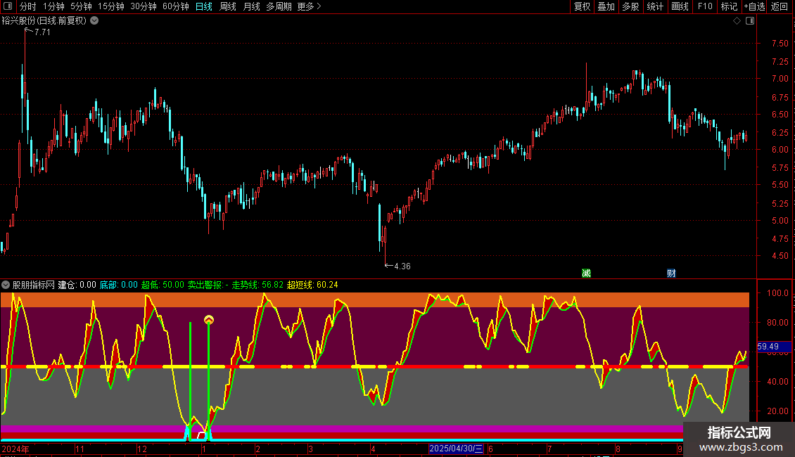 【底部侦测】副图,五层渐变色能量金字塔,独创“白-黄-绿”三级底部侦测信号
