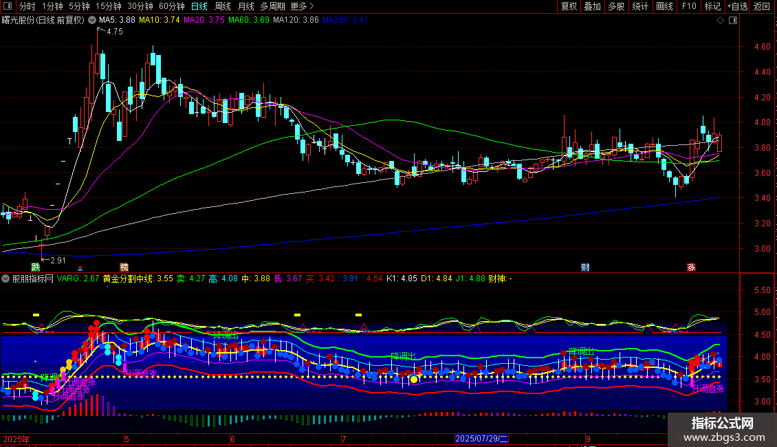 上中:=IF(1=1,低0+KJ*0.618,DRAWNULL),COLORMAGENTA,NODRAW;