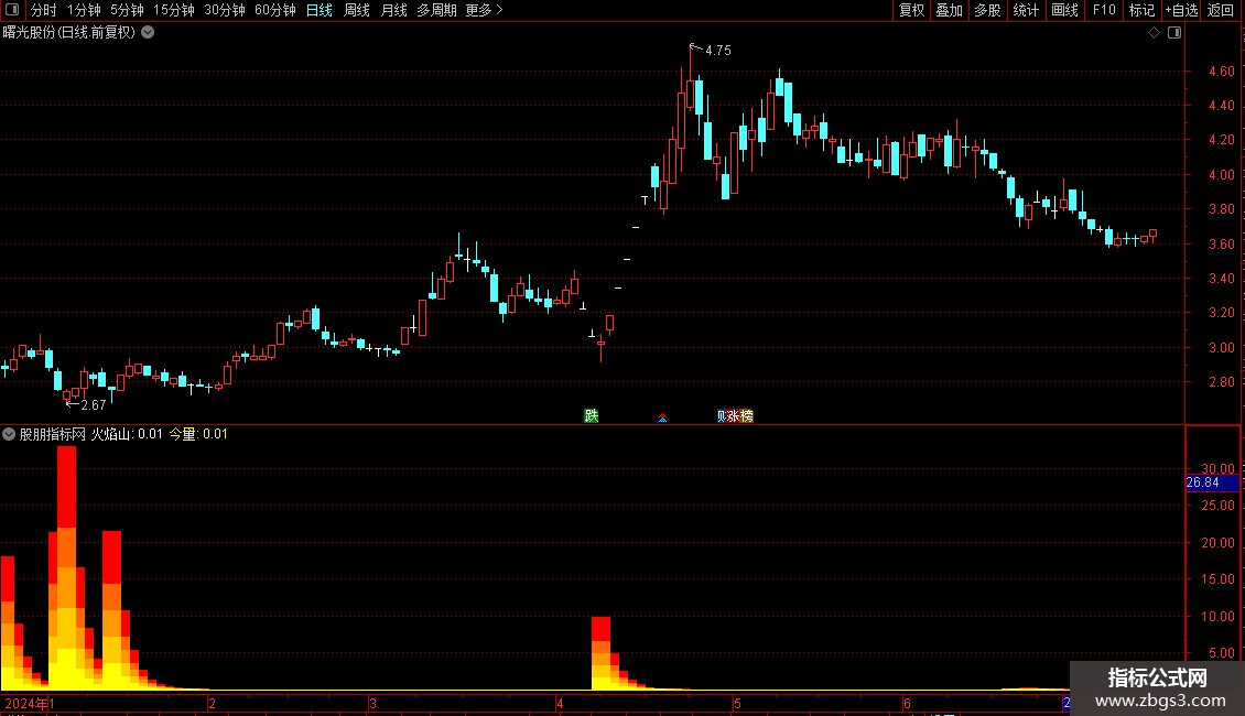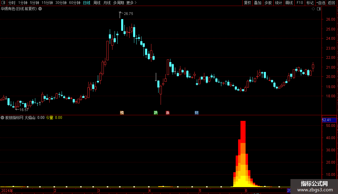 STICKLINE(火焰山>0,0,今量*0.2,8,0) COLOR00FFFF;