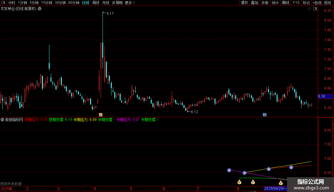 中期压力:DRAWLINE(S3,H,S2,H,1),COLORYELLOW;